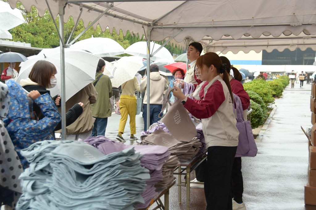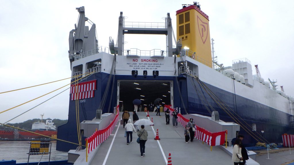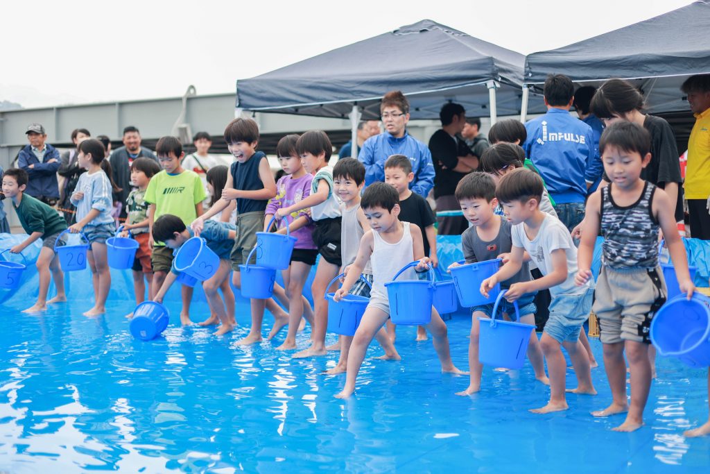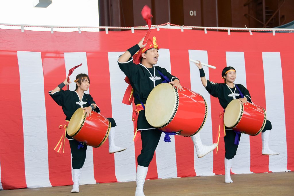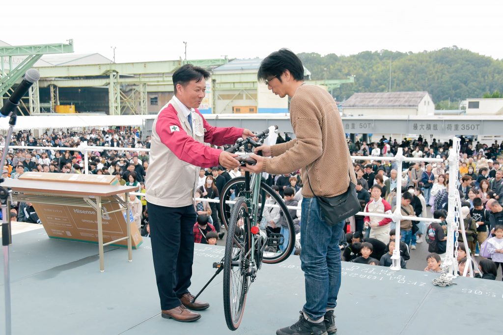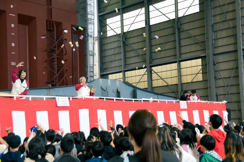 11月9日(日)新来島感謝祭を開催しました。新造船見学では、物流業界の2024年問題解決と脱炭素社会実現に寄与する最新のRORO船を見ていただきました。その他のエリアでは、普段愛媛県ではお目にかかれない沖縄のエイサーや今では無くなってしまった地域イベントおおにしフェスタの名物企画であった魚のつかみどりも実施しました。終盤、恒例イベントの餅まきと福引抽選会の開始前には、朝から降っていた雨も上がり晴れ間が!